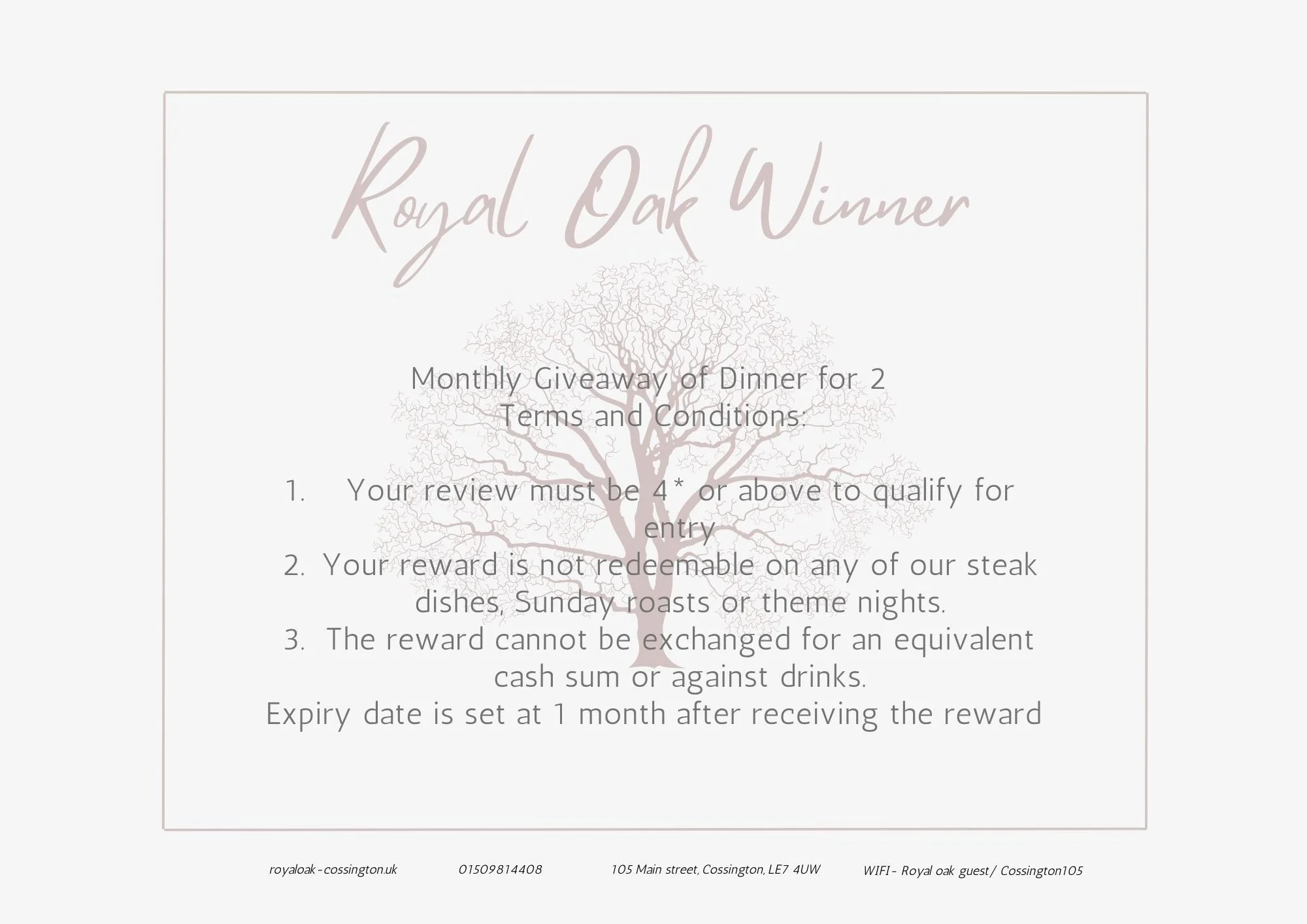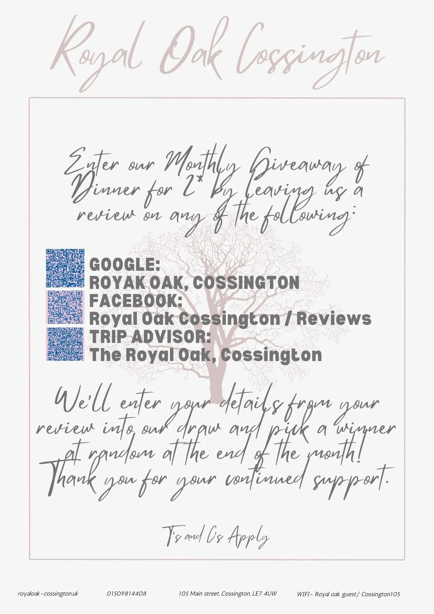 Please do this via or team, Email hello@cossington-royaloak.com, Phone 01509814408, or message via our soicals
